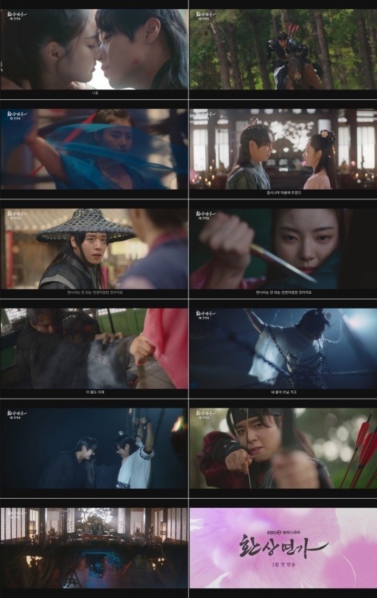 앞서 ‘환상연가’의 주연 배우인 박지훈(사조 현, 악희 역)과 홍예지(연월, 계라 역) 그리고 황희(사조 융 역), 지우(금화 역)의 스틸컷이 순차적으로 공개돼 시선을 모은 가운데 4일(오늘) 역대급 판타지 로맨스 드라마의 탄생을 알리는 1차 티저 영상이 처음으로 공개돼 예비 시청자들의 환호를 부르고 있다.
