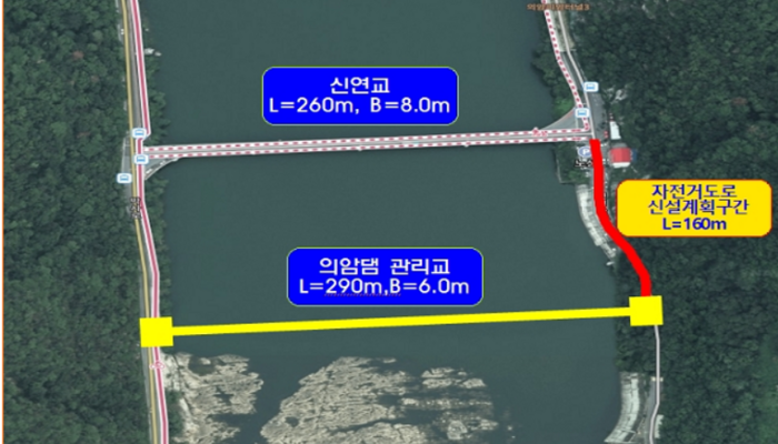 현재 미 개설된 의암댐 관리교~신연교 구간에 대해 내년 상반기에 2억 원을 투입해 자전거도로 160m를 개설하고 의암댐 관리교에 안전 시설물 설치, 노면 도색 등 정비사업 추진 및 안전요원 배치 등이 완료된 후 안전한 자전거길을 이용하도록 할 방침이다.