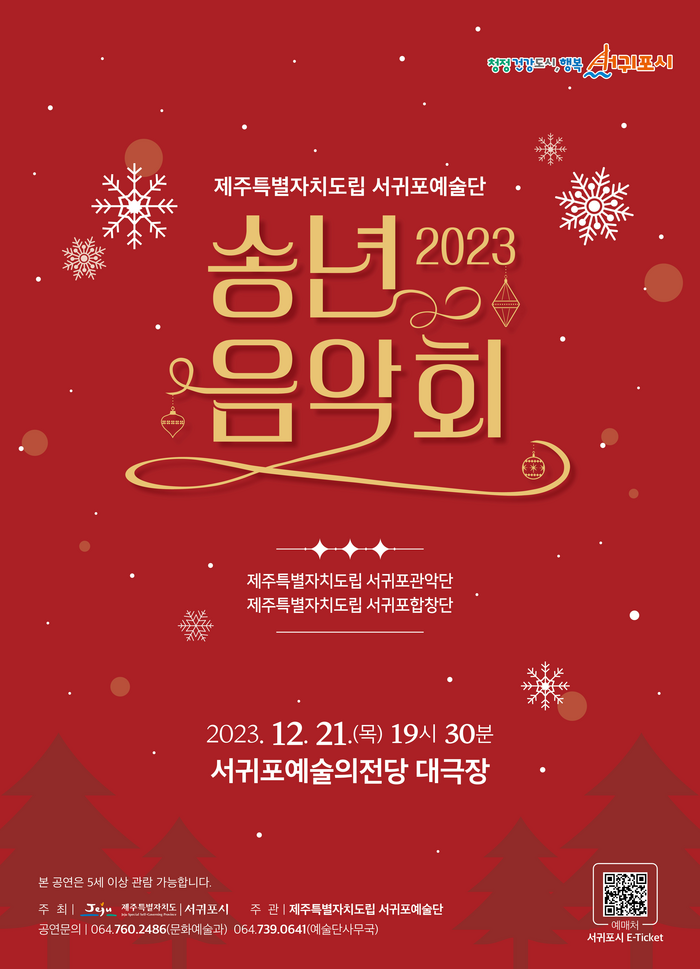 [스포츠서울ㅣ김기원기자] 서귀포시와 제주특별자치도립 서귀포예술단이 한 해를 마무리하는 2023 송년음악회를 오는 12월 21일(목) 19시 30분 서귀포예술의전당 대극장에서 개최한다.