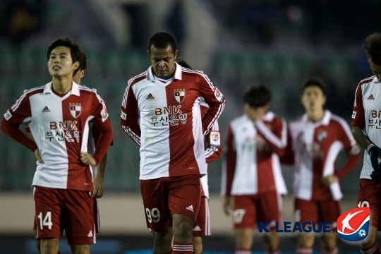 부산은 ‘다이렉트 승격’의 문턱에서 돌아가야만 했다. K리그2 충북청주FC와 최종전에서 1-0으로 우승을 확정하는 듯했지만, 후반 추가시간 통한의 실점으로 1-1이 됐다. 당시 2위였던 김천 상무가 서울 이랜드를 1-0으로 꺾으면서 승점 71로 부산(승점 70)을 따돌리고 ‘역전 우승’을 일궈냈다.