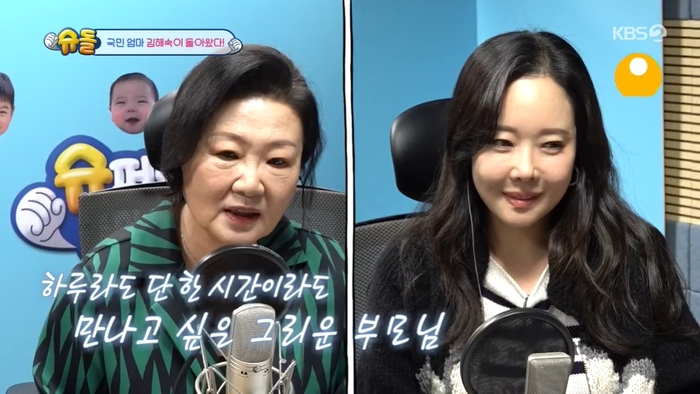 5일 방송된 KBS2 ‘슈퍼맨이 돌아왔다’에는 배우 김해숙이 스페셜 내레이션을 맡아 소유진, 최강창민과 호흡을 맞췄다.