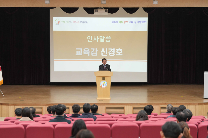 신경호 교육감은 “이번 성과발표회는 급변하는 과학·정보 분야 교육환경에 대비하기 위해 강원 교육정책의 우수사례를 공유하고 미래를 상상하며 준비하는 시간이 될 것으로 기대한다”며 “도교육청은 앞으로도 미래세대의 꿈을 적극적으로 지원하고 응원하며, 우수한 강원의 인재를 길러내기 위한 체계적이고 다양한 지원을 이어 나가겠다”고 말했다.