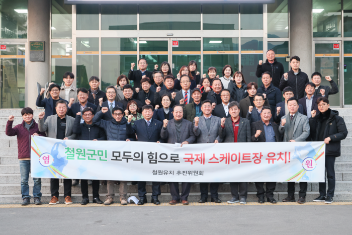 6일 철원군에 따르면 추진위가 지난 5일 오후 군청 상황실에서 발족식을 열고, 공식 명칭을 <철원군 국제스피드스케이트장 유치 추진위원회>로 정했다. 위원장에는 박기준 군의장, 부위원장은 임대수 체육회장, 유종근 번영회장, 최춘석 (사)전국이통장연합중앙회 철원군지회장을 각각 추대했다. 고문에는 김현종 전 5군단장, 박철희 전 제1기갑여단장, 최성윤 대한빙상경기연맹(KSU) 심판을 선출했다.