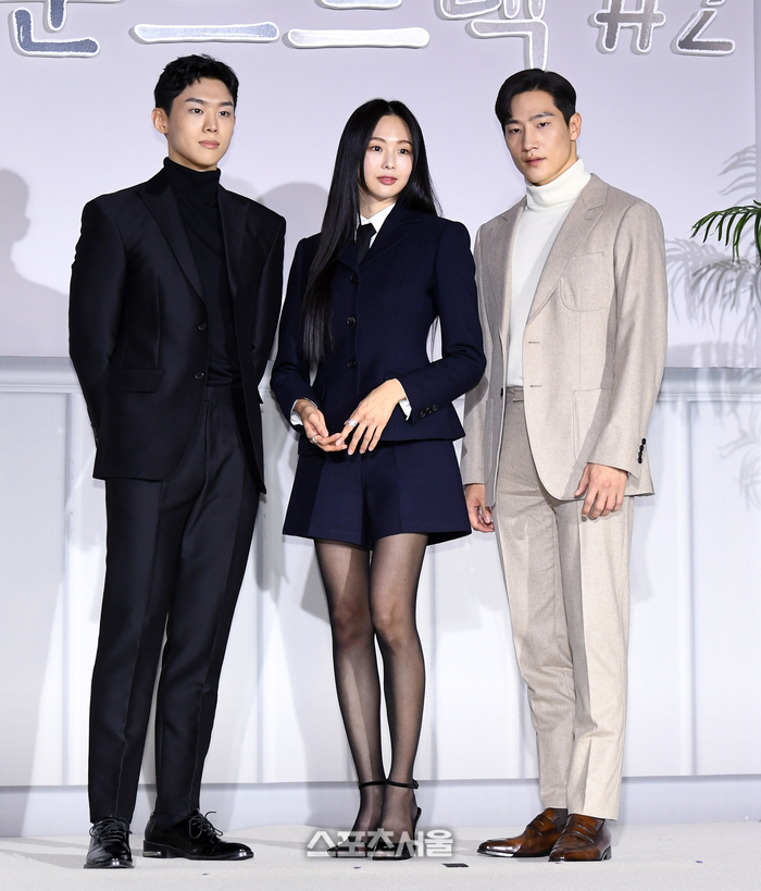 배우 손정혁(왼쪽)과 금새록(가운데), 노상현이 6일 서울 중구 앰버서더서울풀만호텔에서 진행된 디즈니+ '사운드트랙 #2' 제작발표회에서 취재진을 향해 포즈를 취하고 있다. '사운드트랙#2'는 피아노 과외 선생님 ‘현서’가 뜨겁게 사랑하고 차갑게 헤어졌던 전 연인과 바랜 꿈을 다시 잡아준 연하남과 함께 뮤직 프로젝트를 위해 한 집에 머물게 되면서 벌어지는 로맨스 드라마로 배우 금새록, 노상현, 손정혁 등이 출연하며 김희원 감독과 최정규 감독이 공동 연출을 맡았다. 2023. 12. 6. 박진업기자 upandup@sportsseoul.com