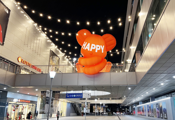 커넥트플레이스 서울역점 스테이션존(Station Zone)과 마켓존(Market Zone)을 이어주는 3층 외부 연결부와 스테이션존 4층 내부 공용홀 등 총 2곳에 초대형 베어벌룬을 설치했다. 외부 연결부에는 ‘해피(Happy)’ 레터링이 각인된 6m 높이의 주황색 베어벌룬을, 내부 공용홀에는 3m 높이의 은색 베어벌룬을 전시한다. 해당 전시는 내년 2월 13일까지 만나볼 수 있다.