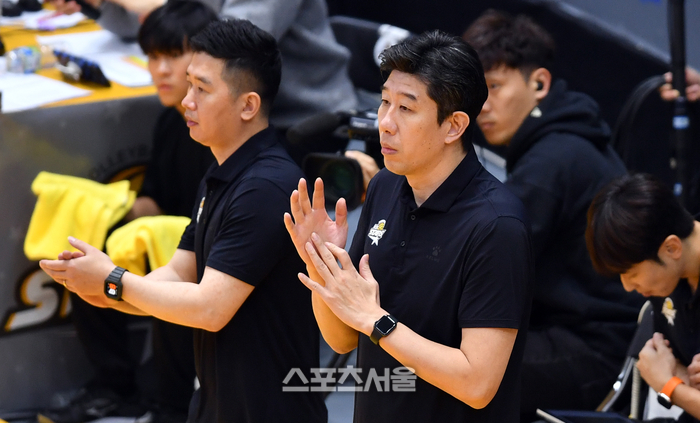 KB 후인정 감독이 6일 의정부체육관에서 열린 2023 도드람 V리그 남자부 KB손해보험과 OK금융그룹과의 경기에서 선수들의 움직임을 주시하고 있다. 2023.12.06. 의정부 | 강영조기자 kanjo@sportsseoul.com