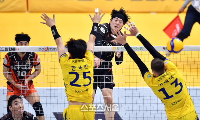 OK 송희채가 6일 의정부체육관에서 열린 2023 도드람 V리그 남자부 KB손해보험과 OK금융그룹과의 경기에서 후위공격을 성공하고 있다. 2023.12.06. 의정부 | 강영조기자 kanjo@sportsseoul.com
