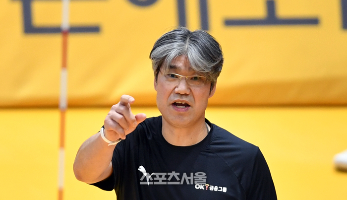 OK 오기노 감독이 6일 의정부체육관에서 열린 2023 도드람 V리그 남자부 KB손해보험과 OK금융그룹과의 경기에서 선수들을 독려하고 있다. 2023.12.06. 의정부 | 강영조기자 kanjo@sportsseoul.com