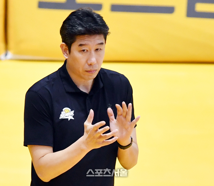 KB 후인정 감독이 6일 의정부체육관에서 열린 2023 도드람 V리그 남자부 KB손해보험과 OK금융그룹과의 경기에서 박수를 치며 선수들을 독려하고 있다. 2023.12.06. 의정부 | 강영조기자 kanjo@sportsseoul.com