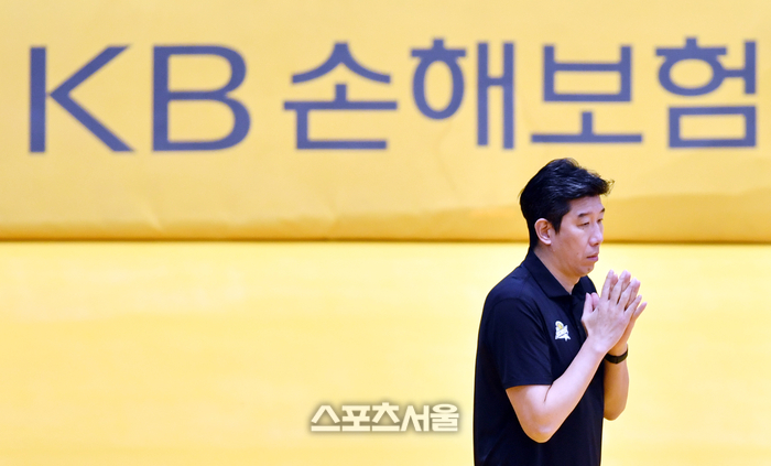KB 후인정 감독이 6일 의정부체육관에서 열린 2023 도드람 V리그 남자부 KB손해보험과 OK금융그룹과의 경기에서 초조한 표정으로 지휘하고 있다. 2023.12.06. 의정부 | 강영조기자 kanjo@sportsseoul.com