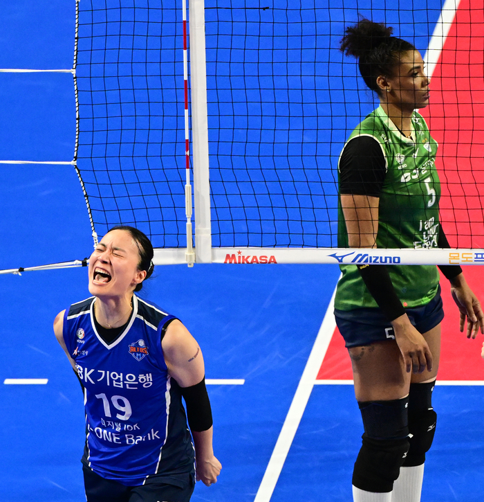 김호철 감독이 이끄는 IBK기업은행은 6일 화성실내체육관에서 도드람 2023~2024 V리그 GS칼텍스와 여자부 경기에서 세트 스코어 3-1(26-24 26-28 25-21 25-20)로 승리했다. 승점 19를 확보한 IBK기업은행은 4위 자리를 꿰차는 동시에 3위 GS칼텍스(승점 22)와 격차를 3점으로 줄였다.