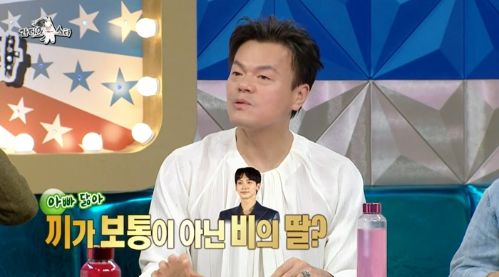 이날 박진영은 비의 두 딸을 언급하며 “끼가 보통이 아니다”라고 밝혔다. 비는 김태희와 결혼해 슬하에 2017년 10월생, 2019년 9월생 두 딸을 두고 있고, 박진영도 2019년 1월생, 2020년 3월생 두 딸을 두고 있다.