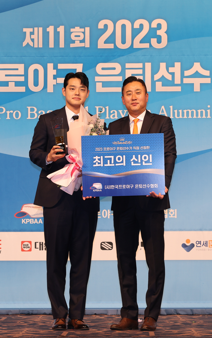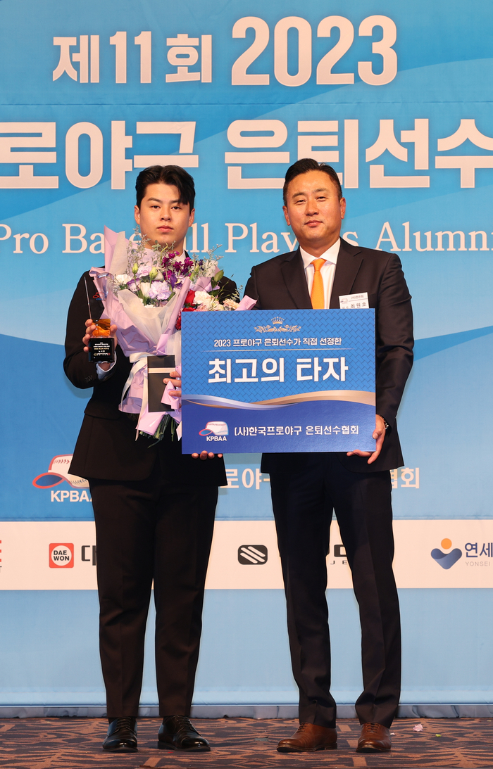 [스포츠서울 | 리베라호텔(청담동)=김동영기자] NC ‘캡틴’ 손아섭(35)이 은퇴선수가 뽑은 2023년 최고의 선수로 선정됐다. 최고의 신인은 문동주(20)다.