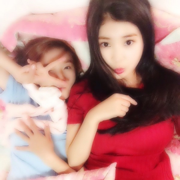 사진 속 이영유는 레드 원피스를 입은 채 아역 배우 출신 서신애와 함께 밝게 웃고 있다.
