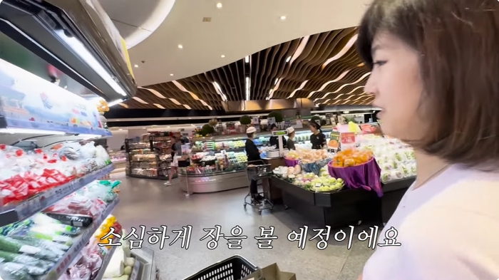 오너먼트를 구매한 후 슈퍼마켓으로 향한 강수정은 “여기 좀 비싸다. 비싼 슈퍼다. 소심하게 장을 볼 거다”라고 전했다. 그의 말처럼 팽이버섯 하나에 6,000원이었다. 강수정은 “말이 되냐. 비싸서 자꾸 살포시 내려놓는다”라고 전했다.