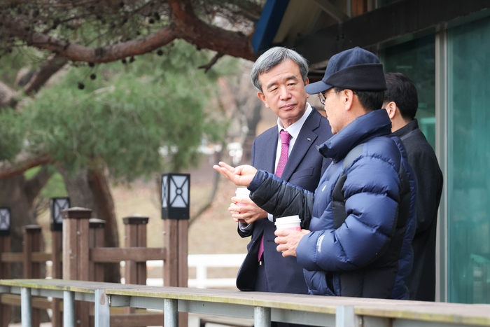 정기환 회장은 지난 6일 새벽 렛츠런파크 서 경주마 조교 현장을 찾았다. 현장을 방문한 정 회장은 혹한기에도 새벽부터 구슬땀을 흘리는 마필관리사, 조교사, 기수 등 경마관계자들을 격려했다.