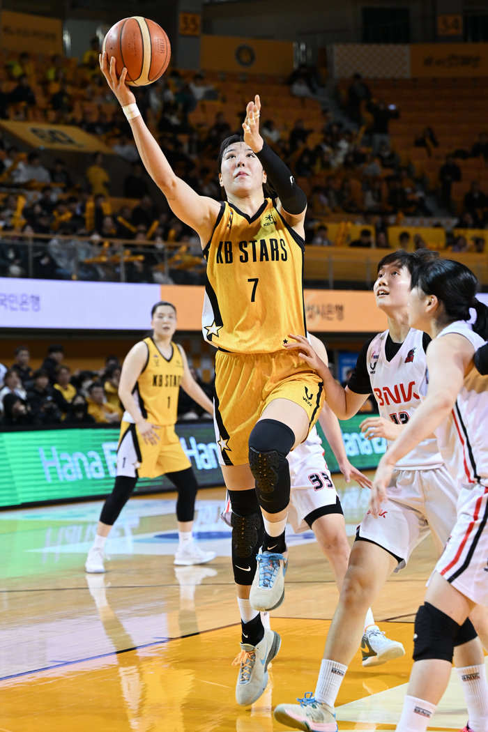 국민은행은 7일 청주실내체육관에서 열린 우리은행 우리WON 2023~2024 여자프로농구 BNK와의 홈경기에서 74–63으로 승리했다. 시즌 8승(1패)째를 기록한 국민은행은 우리은행과 공동 선두로 올라섰다.