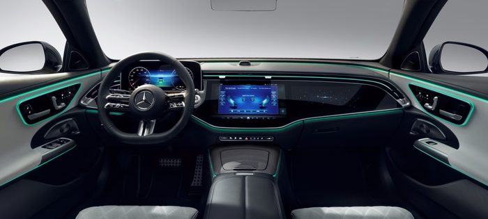더 뉴 E-클래스에는 더욱 지능적이고 높은 학습능력을 보유한 새로운 3세대 MBUX 인포테인먼트 시스템과 메르세데스-벤츠가 2025년경 선보일 전용 운영체제 MB.OS의 선행 버전이 탑재된다. 또한, 사운드 시각화 기능이 포함된 새로운 액티브 앰비언트 라이트와 옵션으로 선택 가능한 MBUX 슈퍼스크린이 새롭게 적용돼 인상적이고 실감나는 엔터테인먼트 경험을 즐길 수 있다.