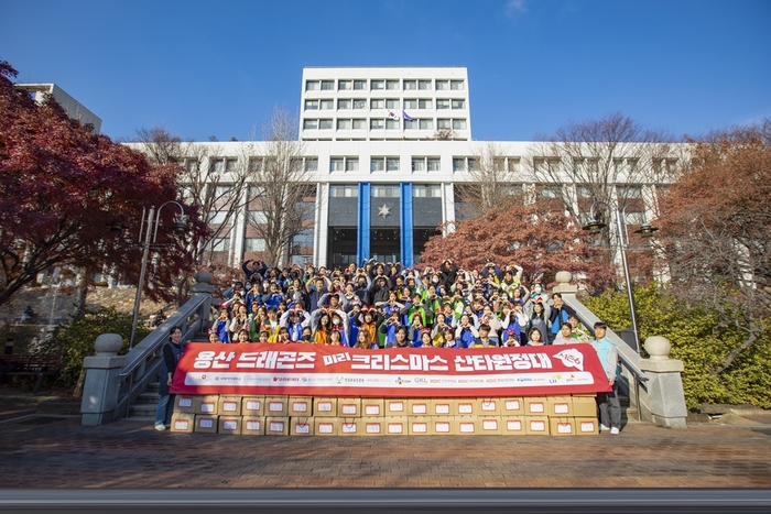용산드래곤즈는 지난 4일 용산 지역 아동복지시설 어린이들에게 크리스마스 선물을 전달했다. 용산 드래곤즈는 매년 연말 지역사회 어린이들에게 선물과 응원 메시지를 전달하는 ‘미리 크리스마스 산타 원정대’ 활동을 진행하고 있다. 6년째를 맞이한 올해 행사에는 CJ CGV를 비롯해 아모레퍼시픽, 아모레퍼시픽공감재단, 국민건강보험공단 용산지사, 삼일회계법인, 삼일미래재단, 숙명여자대학교, 오리온재단, 용산구자원봉사센터, 코레일네트웍스, 한국보육진흥원, 한국토지주택공사, GKL(그랜드코리아레저), HDC신라면세점, HDC아이파크몰, HDC현대산업개발이 함께했다.