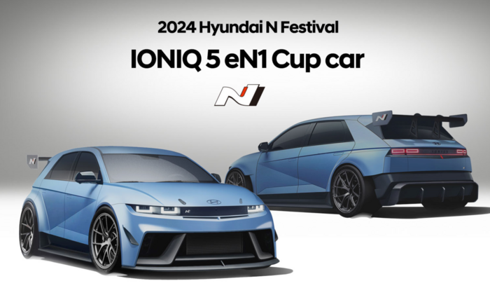 현대자동차는 이날 ‘eN1 클래스’에서 활약할 고성능 전기차 IONIQ 5 N 기반 국내 최초 원메이크 EV 레이스 카 ‘IONIQ 5 eN1 컵카(Cup car)’ 디자인을 공개해 2024시즌 전기차 모터스포츠에 대한 기대감을 높였다.
