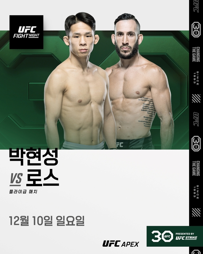 이번 대회에는 한국 파이터 두 명이 동반 출전한다. 메인카드 1경기에선 ‘아이언 터틀’ 박준용이 안드레 무니즈(33∙브라질)과 미들급(83.9kg)에서 격돌한다. 언더카드 5경기에선 ‘로드 투 UFC’ 시즌 1 플라이급(56.7kg) 우승자 박현성이 섀넌 로스(34∙호주)를 상대로 UFC 신고식을 치른다.