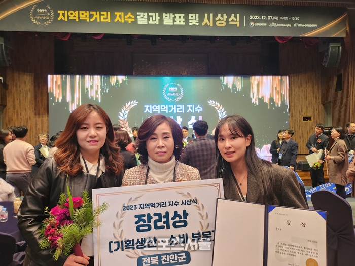 [스포츠서울 l 진안=고봉석 기자] 전북 진안군이 ‘2023년 지역 먹거리 지수 평가’에서 기획생산‧소비부문 우수 지자체로 선정돼 ‘한국농수산식품유통공사 사장상’을 수상했다고 8일 밝혔다.
