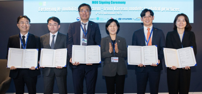 이날 체결식에는 현대차 글로벌수소비즈니스사업부장 박철연 상무, 환경부 한화진 장관, 유엔 아시아태평양경제사회위원회(UNESCAP) 아르미다 알리샤바나 사무총장, 한국수자원공사 오은정 환경에너지본부장, 글로벌녹색성장기구(GGGI) 신경남 사무차장보, SK E&S 수소사업개발그룹장 소유섭 부사장 등이 참석했다.