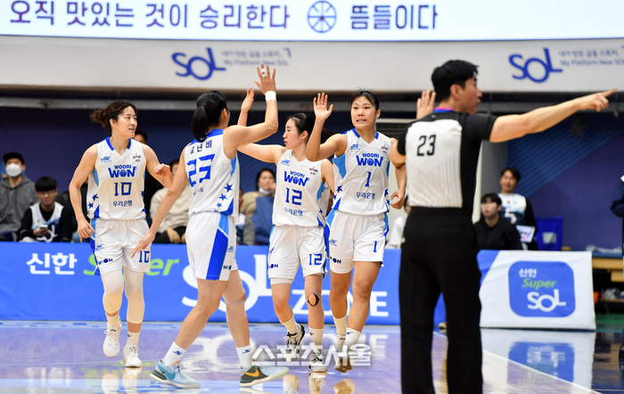 김단비 등 우리은행 선수들이 11일 인천 도원체육관에서 열린 2023-2024 WKBL 신한은행과 우리은행의 경기에서 3쿼터 경기를 마치고 벤치로 향하고 있다. 2023.12.11. 인천 | 강영조기자 kanjo@sportsseoul.com