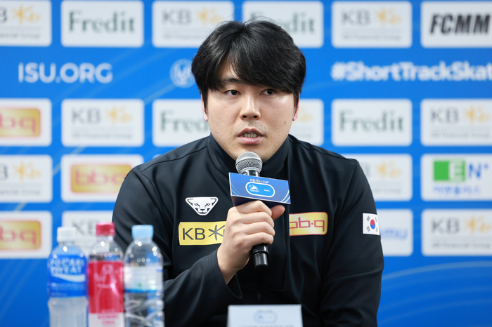 한국팀은 15일부터 17일까지 사흘 동안 이곳에서 열리는 2023~2024 시즌 국제빙상연맹(ISU) 쇼트트랙 월드컵 4차 대회를 앞두고 이날 선전을 다짐했다.