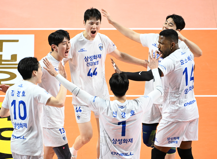 벌써 다섯 번째 5세트 경기 승리. 명승부의 끝에서 웃는 팀은 늘 삼성화재다.