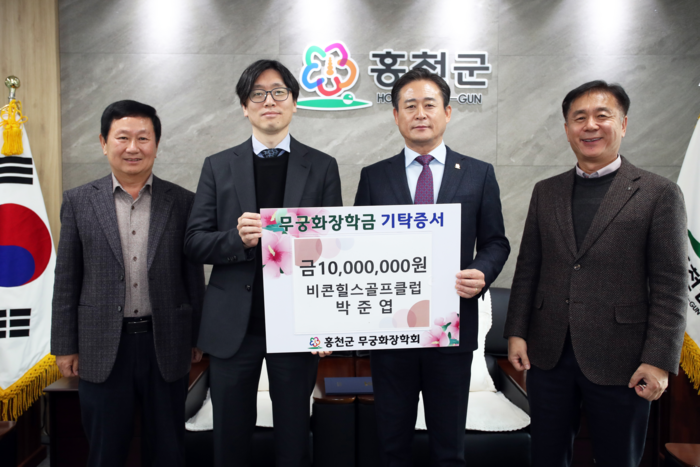 [스포츠서울ㅣ김기원기자] 홍천군 비콘힐스골프클럽은 12월 13일 오전 9시 홍천군청을 방문하여 홍천군 인재육성을 위한 무궁화장학금 1,000만원을 기탁했다.