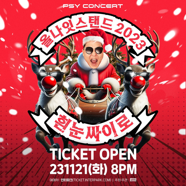 싸이는 22~24일 서울 KSPO돔에서 자신의 연말 콘서트 브랜드 ‘올나잇스탠드 2023 - 흰눈싸이로’로 팬들을 만난다. 오후 11시 42분에 시작해 첫차가 다니는 시간까지 계속되는 밤샘 공연으로 매년 티켓을 구하기 힘든 ‘피켓팅’(피 튀기는 티켓팅)으로 잘 알려져 있다.