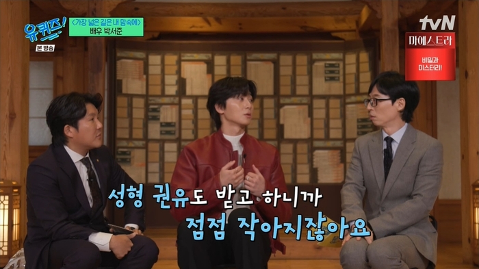 박서준은 데뷔 전 “저는 제 눈이 콤플렉스였다”라며 “처음에 데뷔하기도 힘들 때 지적을 많이 받았다. 그때는 저처럼 생긴 사람보다는 진하게 생긴 걸 선호했던 시기였다. ‘어디서 굴러먹다 온 애니?’란 말을 듣기도 했고, 성형 권유도 받으니까 점점 작아졌다”라고 털어놨다. 이어서 “‘이쪽 길이 아닌가?’ 하는 생각도 많이 들었다”라고 전했다.