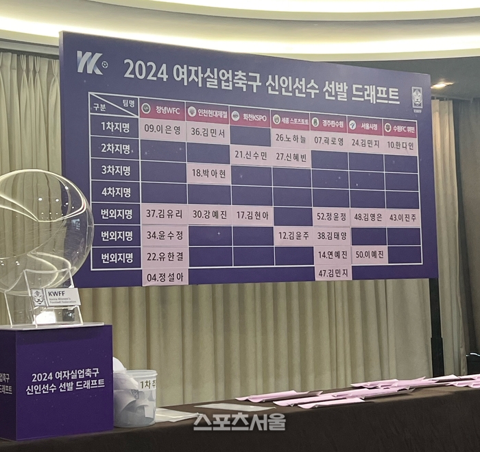 화천KSPO는 패스를 외친 가운데 세종 스포츠토토와 경주한수원, 서울시청, 수원FC위민은 노하늘(대덕대)~곽로영(세종고려대)~김민지(대덕대)~한다인(세종고려대)을 1차지명에서 차례로 호명했다.