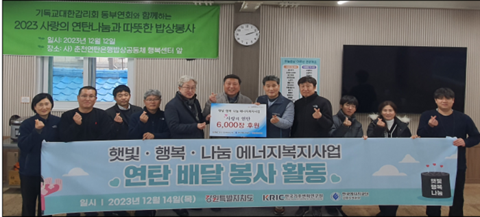 [스포츠서울ㅣ춘천=김기원기자] 강원특별자치도, 한국에너지공단 강원지역본부, 한국기후변화연구원은 도내 어려운 이웃들의 따뜻한 겨울나기를 지원하기 위해 14일 연탄 6,000장을 기부했다.
