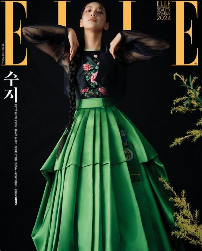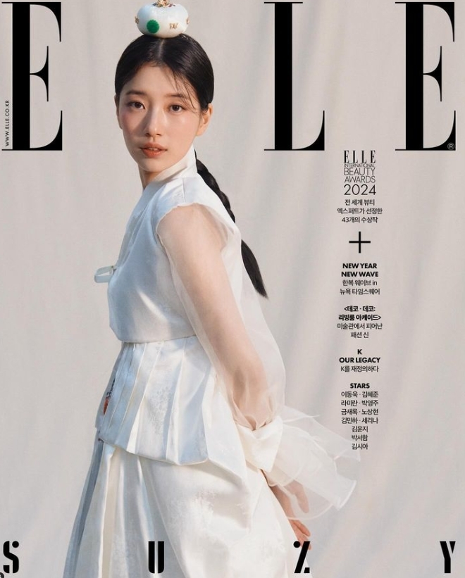 엘르는 “2024년 새해를 여는 첫 번째 엘르 1월호 커버 스타는 한복을 차려입은 수지다. 1992년 창간한 엘르의 첫 한복 커버이기 때문에 한층 더 뜻깊다”라고 전했다.