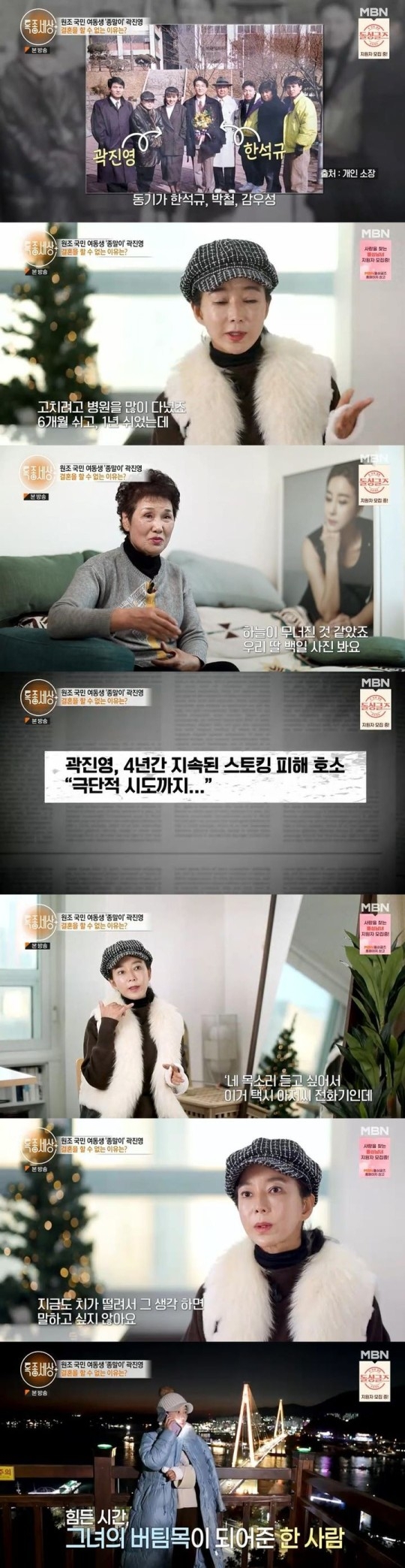 또 곽진영이 이성에게 마음의 문을 닫은 이유에 대해서도 공개됐다. 곽진영은 “지난 4년 동안 한 팬에게 스토킹을 당했다. 이로 인해 안좋은 생각까지 했다”고 말했다.