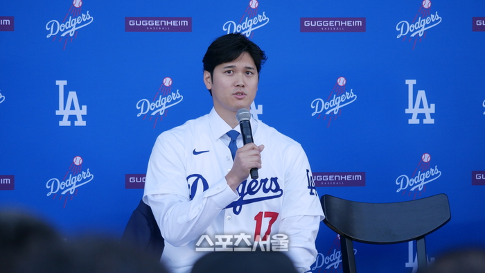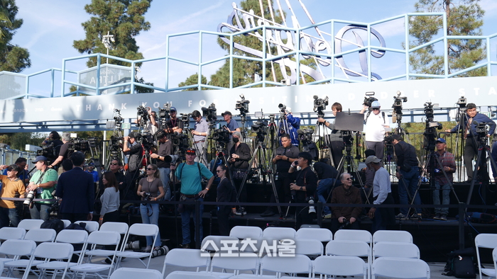 오타니의 입단 기자회견은 15일 다저스타디움 외야 정문 센터 플라자에서 벌어졌다. 특설로 만들었다. 취재진이 너무 많이 모였기 때문이다. 서던 캘리포니아의 날씨가 온화해 야외가 가능하다. 다저스 구단에 따르면 300여 명이 현장 취재에 몰렸다. 일본 기자만 200여 명에 이른다.
