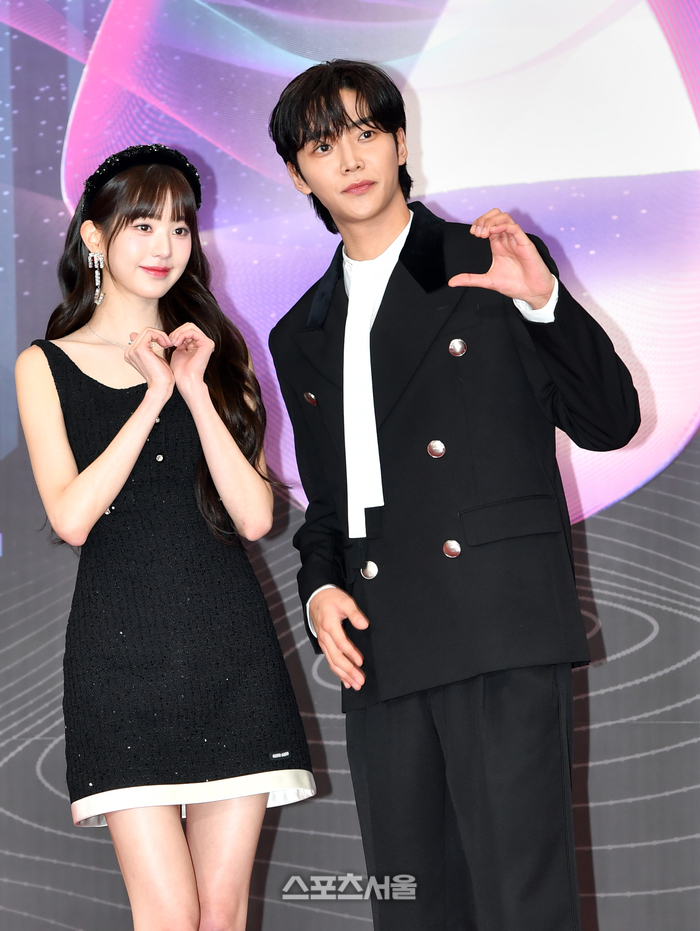 MC 장원영과 로운이 15일 여의도 KBS에서 열린 KBS 2023뮤직뱅크 글로벌 페스티벌레드카펫 무대에 올라 포토타임을 갖고 있다. 레드카펫에는 사회자 유재필의 진행으로 MC 로운과 장원영, 아이브 판타지보이즈,라이즈,제로베이스원, 싸이커스, 하이키, 엑스디너리히어로즈, 에스파, 크레비티, 투모로우바이투게더,원어스, (여자)아이들, 프로미스나인,영케이, 오마이걸 아린, 선미가 참여했다. 2023.12.15. 여의도 | 강영조기자 kanjo@sportsseoul.com