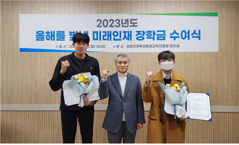 한편, 2023년 올해를 빛낸 미래인재로 성취 분야에 제19회 항저우아시안게임에서 계영과 혼계영에서 각각 은메달을 획득하고, 전국체육대회에서 접영 100m 한국 신기록을 수립하며 금메달 3, 은메달 1, 동메달 1개의 쾌거를 올린 강원체육고등학교 2학년 김영범(23년 선발) 군이 선정됐으며, 보은 분야에 화천 출신의 천재 기타리스트 양태환(19년 선발) 군이 올 한 해 다양한 재능기부 활동으로 선정, 1인당 300만 원의 특뱔장학금이 지급된다.