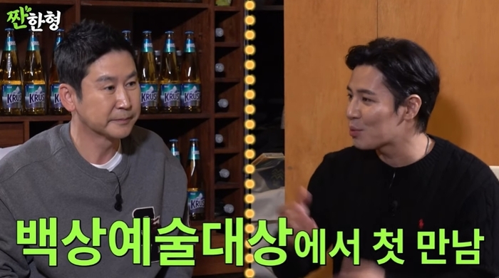 한 잔을 먹던 이규형은 “저 (신동엽) 형님 처음 뵀을 때 백상예술대상 때 그때 처음 형님하고 인사를 나눴는데 (시상식 끝나고) 차 타고 가시다가 창문으로 이렇게 내리시더니 ‘오 규형 씨’ 하면서 인사를 해주셨다. ‘아예 형님 반갑습니다’ 하는데 팬티만 입고 계신 거다”고 말해 모두를 웃게 했다.