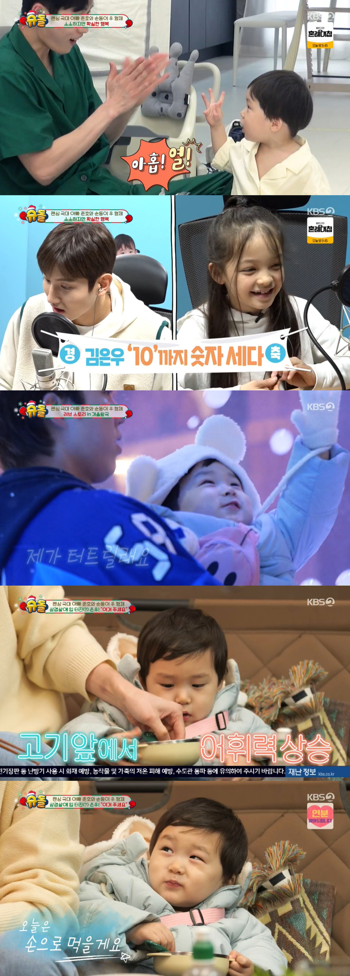 운동을 마친 은우에게는 과자 보상이 주어졌다. 김준호가 “얼마 먹을거야?”라고 하자 은우는 “많이. 여섯개”라며 숫자를 또박또박 말해 감탄을 자아냈다. 이어 은우는 숫자를 열까지 척척 세 박수를 받았다.