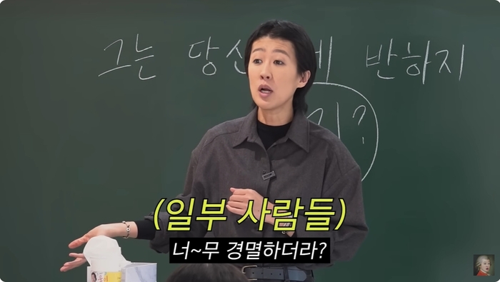 홍진경은 “여러 이유가 있겠죠”라며 “차일만한 조짐이 보이면 먼저 찰 수도 있는 거고. 다양한 얍삽한 방법으로 차이지 않도록 조심해 온 세월이었다”라고 해 웃음을 안겼다.