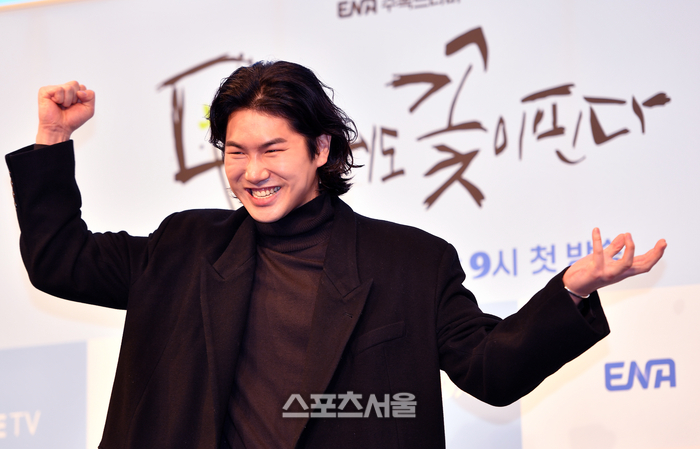 이재준이 20일 신도림 디큐브시티에서 열린 ENA 새 수목드라마 ‘모래에도 꽃이 핀다(김진우 감독)’ 제작발표회에 무대에 오르고 있다. ‘모래에도 꽃이 핀다’는 20년째 떡잎인 씨름 신동 김백두와 소싯적 골목대장 오유경이 다시 만나며 벌어지는 청춘 성장 로맨스다. 출연: 장동윤, 이주명, 윤종석, 김보라, 이재준, 이주승. 2023.12.19. 강영조기자 kanjo@sportsseoul.com