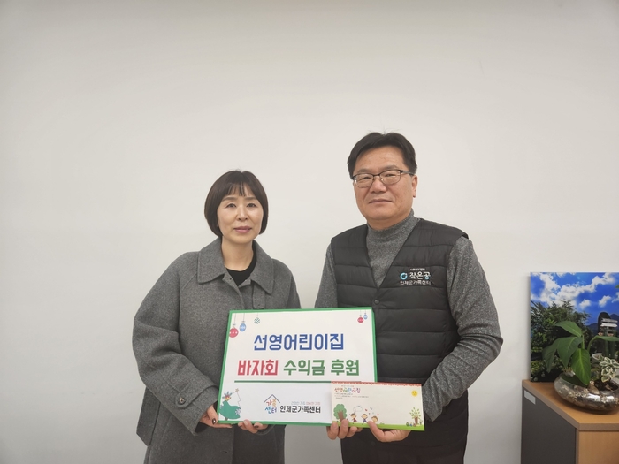[스포츠서울ㅣ김기원기자] 인제군 북면 선영어린이집(원장 김계희)은 지난 19일 인제군가족센터를 방문하여 지역 어려운 이웃들을 위해 써달라며 후원금 50만원과 유아용품 등 후원물품을 전달했다. 이번에 전달된 후원금은 선영어린이집 바자회 수익금에 선영어린이집 교사들이 십시일반 모아 마련됐다.
