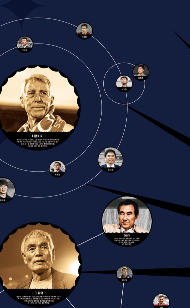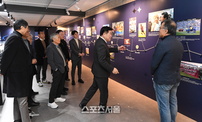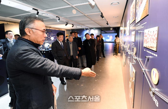 또 K리그에서 굵직한 역사를 쓴 감독과 선수를 별과 별자리로 표현하고 사제지간, 라이벌 등으로 연결한 ‘스텔라(STELLA)’ 구역은 VIP가 가장 오랜 시간 머문 곳이다. K리그 통산 120승 이상을 지휘한 이회택, 허정무, 최강희, 박종환, 김호, 차범근, 김정남, 조광래 감독과 더불어 과거 부천SK(현 제주)를 이끈 니폼니시 감독이 유일한 외인으로 등장했다. 위 이사는 “니폼니시 감독은 국내에 선진축구 바람을 일으킨 주역이다. 현재 그를 통해 뻗어나간 제자가 여럿 있는데 조윤환, 이임생 등이 있다”며 “(당시 주역 또는 그들이 키워낸 인물로) 현재 6명(김기동 최윤겸 이정효 남기일 조성환 윤정환)이나 K리그 사령탑으로 활동, 역사상 가장 많은 감독을 배출했다”고 말했다.