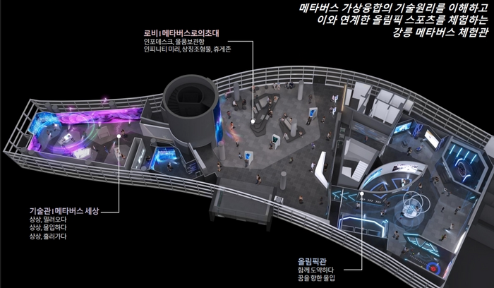 메타버스 스포츠관은 스켈레톤, 봅슬레이, 알파인스키, 스피드 스케이팅, 컬링 등 다양한 동계올림픽 경기종목을 메타버스 기술을 활용한 디바이스, 시뮬레이터 등을 통해 실감나게 체험함으로써 현실에서는 경험하기 힘든 재미와 흥미를 느낄 수 있는 공간으로 마련한다.
