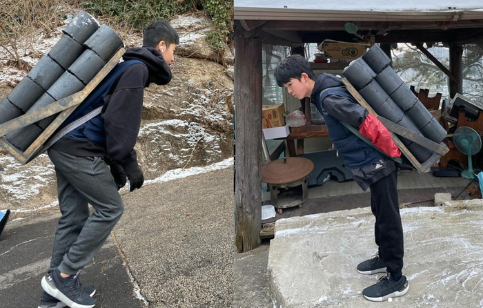 션은 22일 자신의 채널에 15장의 연탄 지게를 메고 눈쌓인 길을 오르는 기특한 두 아들 하랑, 하율의 사진을 올렸다. 서울 기온이 체감온도 영하 15도에 육박하던 지난 20일 아이들은 아버지의 뒤를 따라 연탄 3000장을 나르는 봉사에 나섰다.