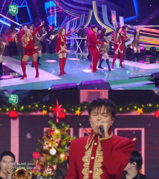 또 ‘골든걸스’ 멤버들과 함께 캐롤까지 부르며 크리스마스 분위기를 냈다. 연예대상에 참석한 스타들은 일어나 이들의 무대를 즐겼다.