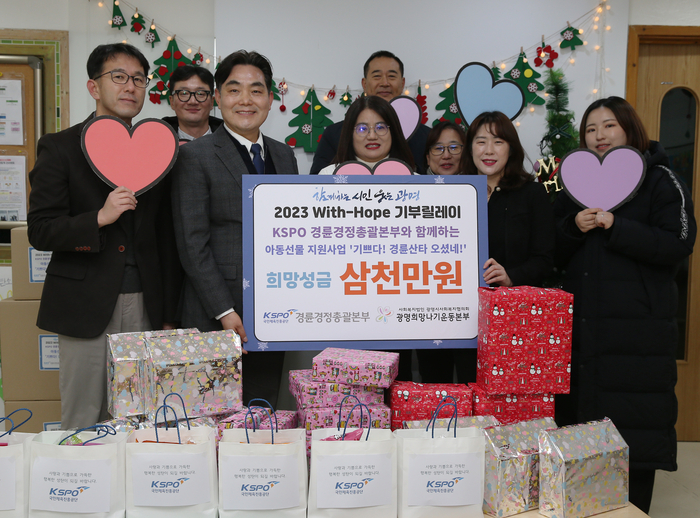 [스포츠서울 이웅희기자] 국민체육진흥공단 경륜경정총괄본부는 지난 21일 광명시 관내 30개 지역아동센터를 이용하는 저소득층 아동․청소년 800명에게 크리스마스 선물(온누리상품권 3000만원)을 지원하는 전달식을 개최했다.